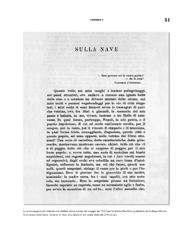 Si intitolava Sulla Nave. Accanto al titolo una citazione del poeta Gabriele D’Annunzio