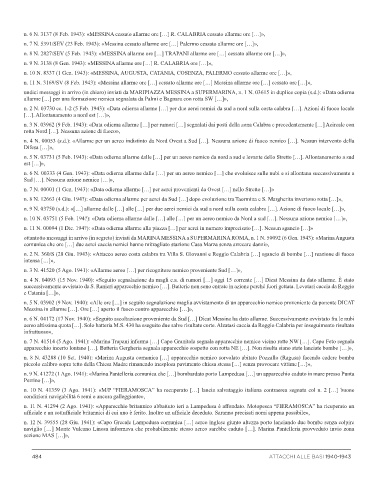 n. 10 N. 8337 (1 Gen. 1943): «MESSINA, AUGUSTA, CATANIA, COSENZA, PALERMO cessato allarme ore […]»,