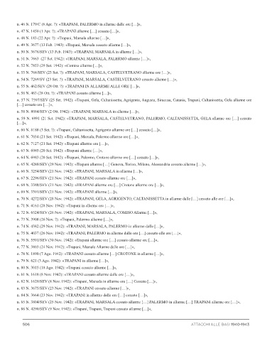 n. 59 N. 6991 (21 Set. 1942): «TRAPANI, MARSALA, CASTELVETRANO, PALERMO, CALTANISSETTA, GELA allarme ore […] cessato
