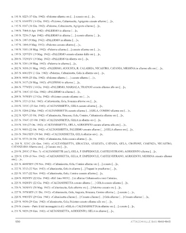 n. 193 N. 8147 (16 Giu. 1942): «Palermo, Caltanissetta, Agrigento allarme […]»,