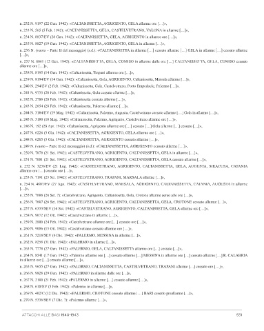 n. 251 N. 7081 (21 Set. 1942): «CASTELVETRANO, AGRIGENTO, CALTANISSETTA, GELA cessato allarme […]»,