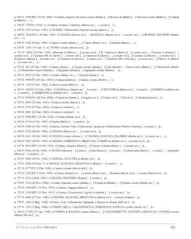 n. 563 N. 9296 (15 Ott. 1942): «Catania, Comiso, Gela, Caltanissetta, Agrigento, Caltanissetta, Palermo allarme […] cessato […]»,
