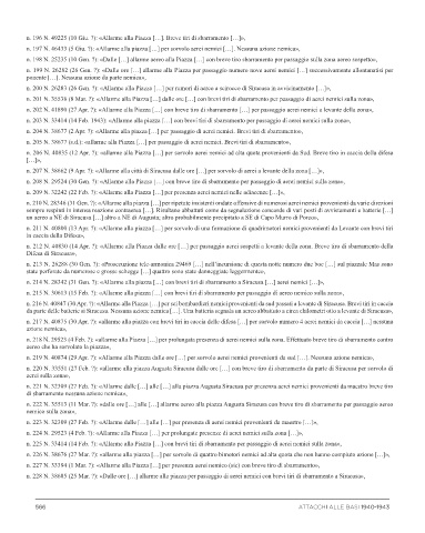 n. 211 N. 40800 (13 Apr. ?): «Allarme alla piazza […] per sorvolo di una formazione di quadrimotori nemici provenienti da Levante con brevi tiri