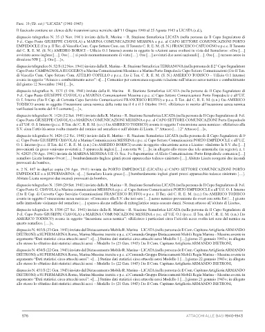 provenienti da greco venivano avvistati n. 5 apparecchi inglesi […] con rotta W. […]»; in allegato allo stesso due tele-armoniche (in segreto), n. 1