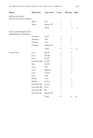 SITUAZIONE VELIVOLI E PILOTI DELL'A.M. ALLE ORE 24 DEL 1° MARZO 1947 197