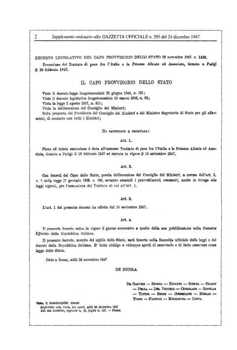 ciate, firmato a Parigi il 10 febbraio 1947 ed entrato in vigore U 16 .settembre ;!M'l:.