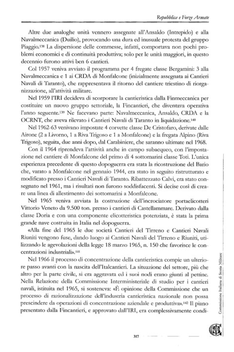 l'anno seguentc.t39 Ne facevano parte: Navalmeccanica, Ansaldo, CRDA c la