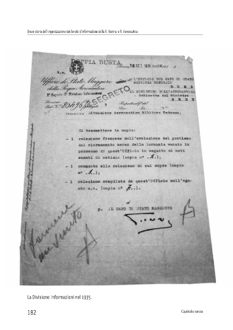 Breve storia dell’organizzazione dei Servizi d’Informazione della R. Marina e R. Aeronautica La Divisione Informazioni nel 1935. 182 Capitolo sesto