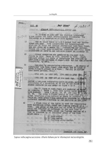 La crittografia Sopra e nella pagina successiva: cifrario italiano per le informazioni meteorologiche. 261