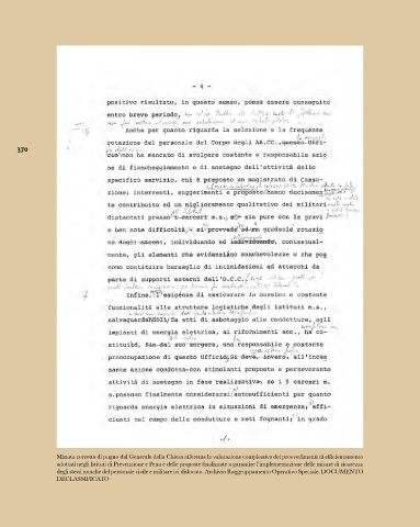 Minuta corretta di pugno dal Generale dalla Chiesa afferente la valutazione complessiva dei provvedimenti di efficientamento
