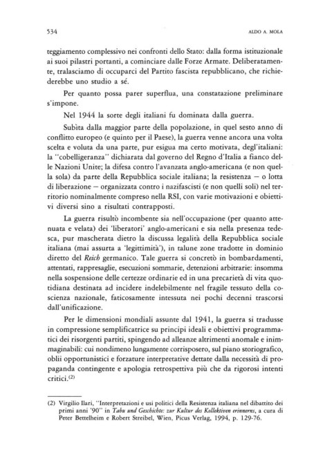 (2) Virgilio Ilari, "Interpretazioni e usi politici della Resistenza italiana nel dibattito dei