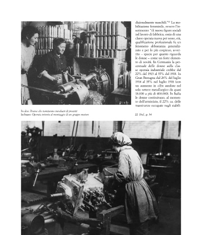 In basso: Operaia intenta al montaggio di un gruppo motore 22 Ibid., p. 34