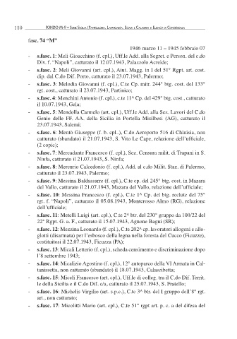 110 Fondo M-9 • Serie Sicilia (Pantelleria, laMPeduSa, egadi e calabria • elenco di conSiStenza