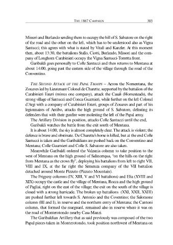 column (III and I), in reserve and the northern entry of Mentana; the Cantoni