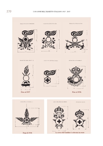 170 I 100 ANNI DELL’ELMETTO ITALIANO 1915 - 2015 Fino al 1937 Fino al 1936 Dopo il 1936 La croce del tondino è colorata in rosso