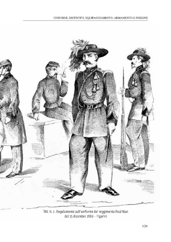 uniformi, distintivi, equipaggiamento, armamento e insegne TAV. N. 1. Regolamento sull’uniforme del reggimento Real Navi del 15 dicembre 1860 – Figurini 129