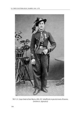 IL CORPO FANTERIA REAL MARINA 1861- 1878 TAV. N. 6. Corpo fanteria Real Marina 1861-68. Sottufficiale in piccola tenuta d’inverno. (Archivio A. Agnesetta) 144