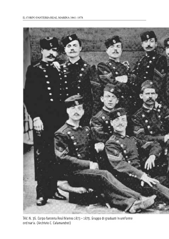 IL CORPO FANTERIA REAL MARINA 1861- 1878 TAV. N. 36. Corpo fanteria Real Marina 1873 – 1879. Gruppo di graduati in uniforme ordinaria. (Archivio C. Calamandrei) 238