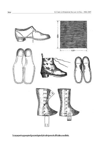 304 Il Corpo dI SpedIzIone ItalIano In CIna - 1900-1905 Scarpe per truppe a piedi, pezze da piedi, stivalini per sottufficiali e uose di tela.