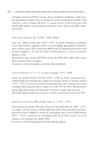 198 L’Archivio deLLA MArinA. GuidA dei fondi conservAti presso L’Archivio deLL’ufficio storico deLLA MArinA MiLitAre