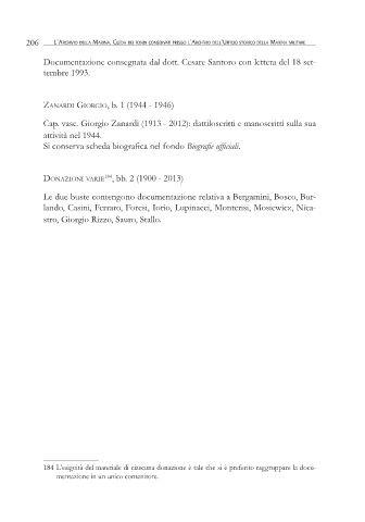 184 L’esiguità del materiale di ciascuna donazione è tale che si è preferito raggruppare la docu-