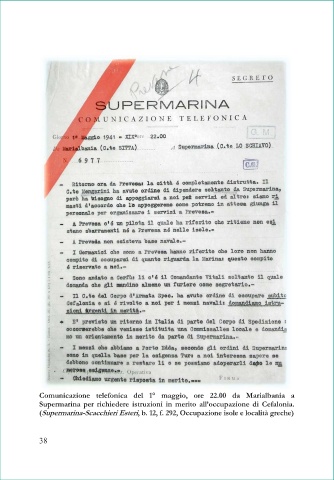 Supermarina per richiedere istruzioni in merito all’occupazione di Cefalonia.