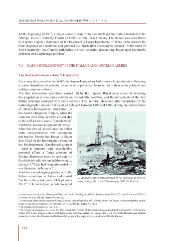 7.4 “RADIO INTELLIGENCE” IN THE ITALIAN AND AUSTRIAN ARMIES