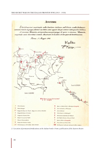 THE SECRET WAR ON THE ITALIAN FRONT IN WWI (1915 – 1918) 2.5 Location of permanent fortifications at the Italian border. From a publication of the Eastern theatre 44