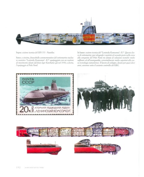 Sopra: sezione tecnica del SSN 571 - Nautilus. In basso: sezione tecnica del "Leninsky Komsomol- K3". Questa clas-